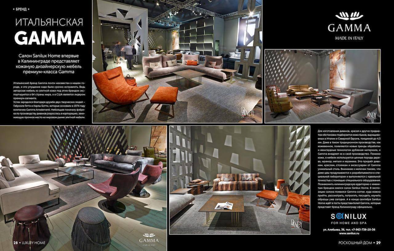 Салон Sanilux Home впервые в Калининграде представляет кожаную дизайнерскую мебель премиум-класса Gamma.