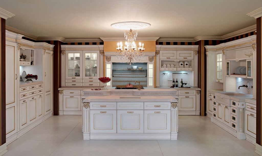 Aran – итальянский производитель классических кухонь с большим выбором декоративных элементов.
